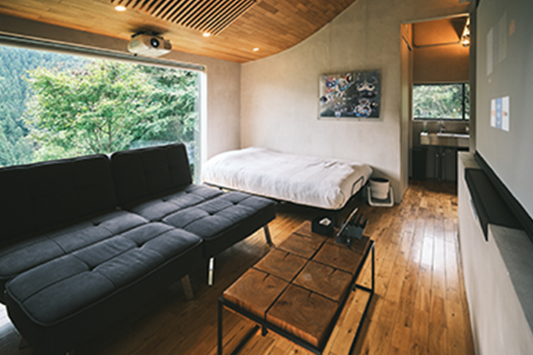 客室には100型4Kシアターがあり、映画と自然の融合を楽しめるこの施設は、まさに“泊まれる映画館”。1日1組限定のため、人工のものが何一つ見えないこの景色を独り占めできちゃいます。