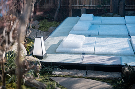 その他にも、京都の川床をイメージした屋外の畳スペースや、床暖のようにポカポカとしたサウナの蔵の2階にある屋内スペース、古民家といえばの縁側スペースなどの休憩スペースが。日本の四季を感じたり、会話を楽しみながらゆったりとリラックスできます。