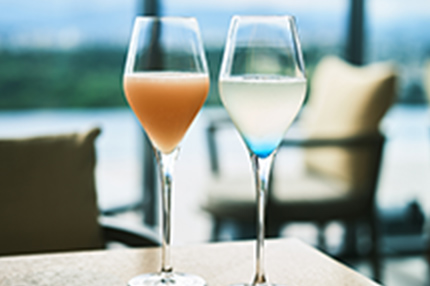 松葉さんが選んだ「ソラノレモネード」は「インフィニティプール」から見える空のグラデーションをイメージして作られたルーフトップバーのシグネチャーとなるドリンクです。