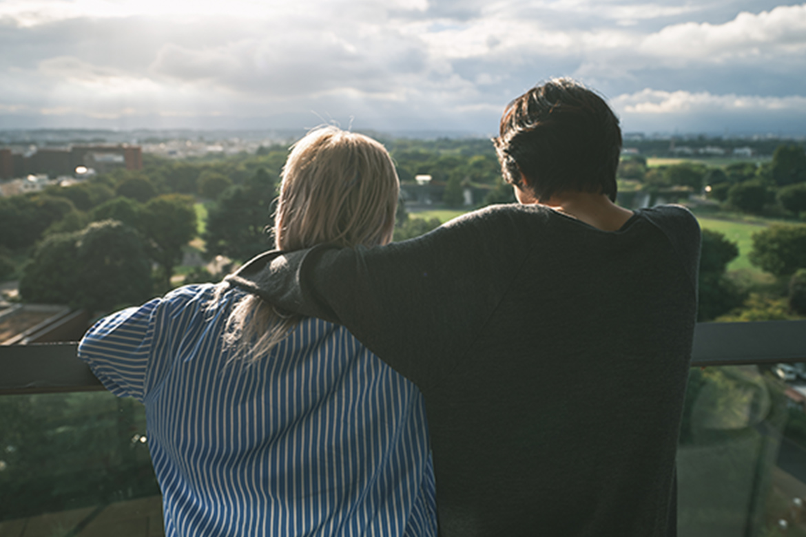 松葉:バルコニーもめっちゃきれい!わ~夕日が眩しい。